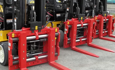 調(diào)距叉廣泛應(yīng)用于第三方物流。裝卸時(shí)搬運(yùn)各種托盤、盒子、籠子和空運(yùn)集裝箱,負(fù)載貨物的尺寸變化較大。叉車租賃車隊(duì)必須全天候進(jìn)行多種工況的應(yīng)用。